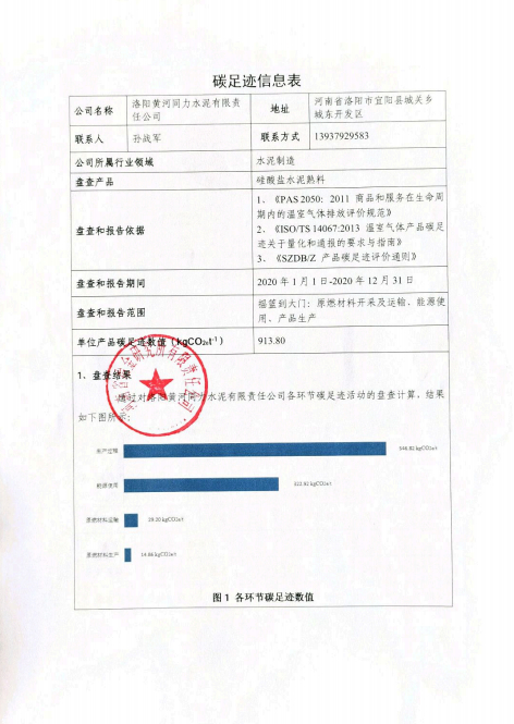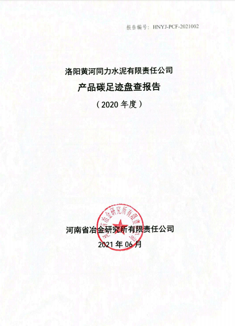 洛陽黃河同力水泥有限責任公司產品碳足跡盤查報告(2020年度)