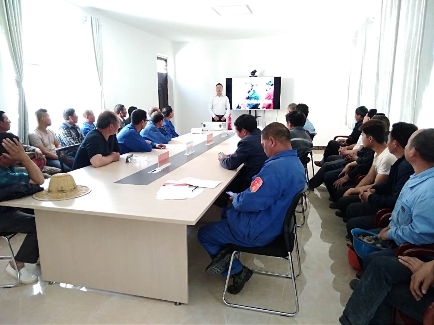 此次演練特邀請河南省消防培訓(xùn)中心教官,對參演人員針對露天礦山開采易發(fā)生的滑坡、坍塌、車輛、火災(zāi)典型事故案例及消防、人員急救知識進(jìn)行了視頻課件教學(xué)培訓(xùn)。參加人員有礦山車間和現(xiàn)代爆破公司共計30余人參加。